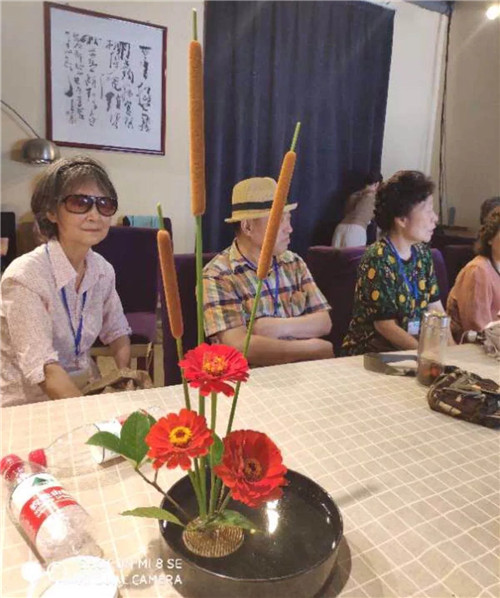 瞧,不大一會兒,居民們就采摘了一大抱色彩艷麗、形態(tài)各異的月季、野菊花……陣陣花香撲鼻而來,各式新鮮花材整齊地擺放在桌面上,專業(yè)插花靜靜老師耐心地為大家講解日式小原流插花技巧,大家興致盎然地練習(xí)插花技修剪花枝、整理花朵、討論插花位置,探討插花要領(lǐng)和技藝。